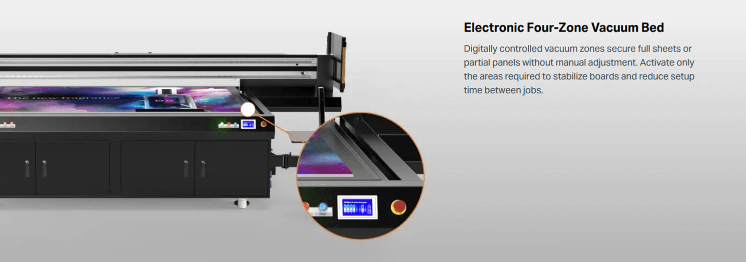 The EU2-1000MF flatbed UV printer is built for direct-to-board production, removing the delays and handling involved in roll printing, laminating and mounting. With a new generation flatbed platform delivering up to 1.5× faster output, it provides stable, repeatable production for signage, retail displays and interior panels.